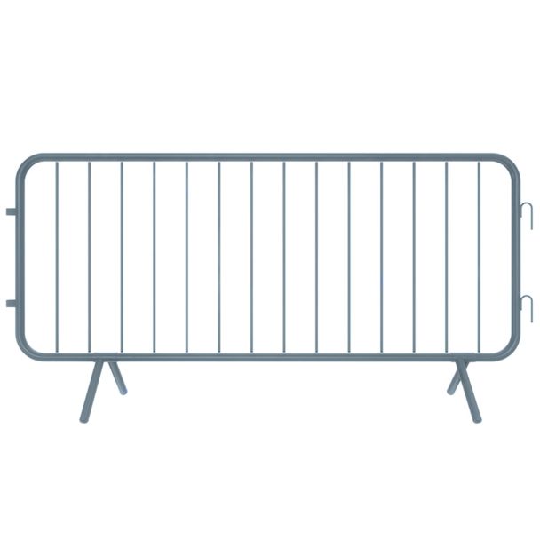 Das Absperrgitter besteht aus einem verschweißten Rohrrahmen mit 14 vertikalen Füllstäben und festen, leicht versetzt geschweißten Standfüßen, die für hohe Stabilität und gute Stapelbarkeit sorgen. Die stabile Konstruktion aus 1,2 mm starkem Stahl hält auch starker Beanspruchung stand.