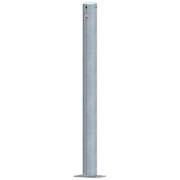 - Robuster Absperrpfosten aus Stahlrohr mit 76 mm Durchmesser