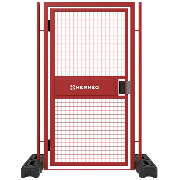 Das robuste Fußgängertor DigiNox von HERMEQ gewährleistet sicheren Zugang und Abgang auf Baustellen. Ausgestattet mit einem digitalen Gatemaster Digi-Tastaturverriegelungssystem für erhöhte Sicherheit und selbstschließenden, verstellbaren Scharnieren von Locinox, minimiert dieses Tor Beschädigungen durch zu schnelles Schließen. Die Scharniere verlangsamen den Schließvorgang, wodurch Schäden am Tor und Schließsystem reduziert werden. Dieses Tor ist ideal für den semipermanenten Einsatz und erhöht die Langlebigkeit in Mietflotten. Standardmäßig ist es in Rot pulverbeschichtet, hat eine Breite von 1,3 m und eine Höhe von 2,1 m. Mit einem Gewicht von 88,89 kg ist es robust und praktisch für jede Baustelle und kann mit Zaunsystemen kombiniert werden.