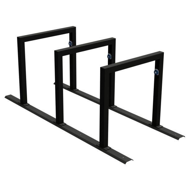 - Robuste 3er Reihenanlage für E-Bikes mit stabilem Anlehnbügel