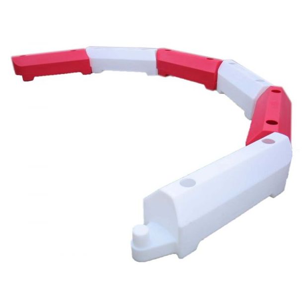 Die Gleisbarriere eignet sich ideal für Motorsportstrecken und kann schärfere Winkel und Kurven als andere Barrieren bewältigen, was sie besonders vielseitig macht. Sie ist aus UV-stabilisiertem Polyethylen gefertigt, wetterbeständig und kann rauen Bedingungen standhalten. Die UV-Schutzschicht sorgt dafür, dass die Qualität der Barriere langfristig erhalten bleibt.