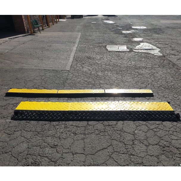 Die Rampen bestehen aus einer robusten Gummibasis und einem PVC-Deckel und werden mit vier Befestigungspunkten geliefert. Das einfache Stecksystem ermöglicht eine schnelle Montage und die gelb-schwarze Farbgebung erhöht die Sichtbarkeit.