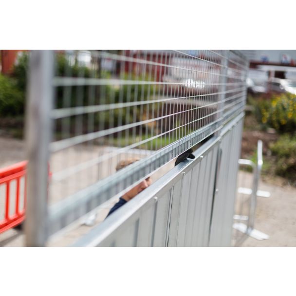 Die Maschendraht-Höhenverlängerungen für Bauzäune dienen dazu, eine zusätzliche Sicherheitsebene zu Ihrem temporären Bauzaunsystem hinzuzufügen, ohne die Windlast auf den Zaunelementen wesentlich zu erhöhen. Diese Verlängerungen können Personen davon abhalten, über Ihre Bauzaunelemente zu klettern oder Gegenstände darüber zu werfen. Die leichte Maschendrahtfüllung lässt sich einfach in die Oberseite eines unserer tragbaren Bauzaunelemente einbauen, während sie den Wind durchlässt und somit keine zusätzliche Belastung auf das Zaunelement ausübt.