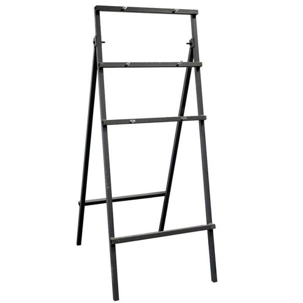 Der Rahmen ist für Schilder bis zu 750 mm mit einem Lochabstand von 300 mm ausgelegt und verfügt über Sandsackstangen zwischen den Beinen, um bei starkem Wind zusätzliche Stabilität zu gewährleisten.