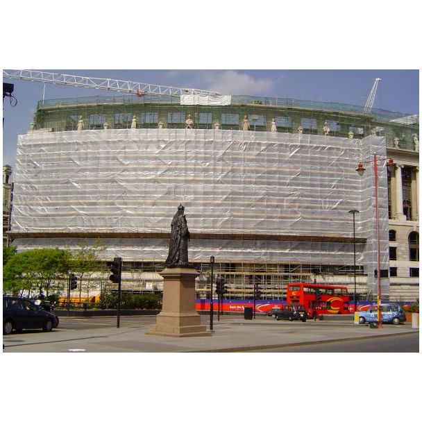 Diese Gerüstplane ist auch in einer schwer entflammbaren Ausführung erhältlich, bitte fragen Sie nach der entsprechenden Aufrüstung.