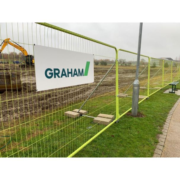 Zusätzlich bieten wir Zaunabdeckungen an, um den Markennamen Ihrer Veranstaltung oder Ihres Projekts zu fördern.