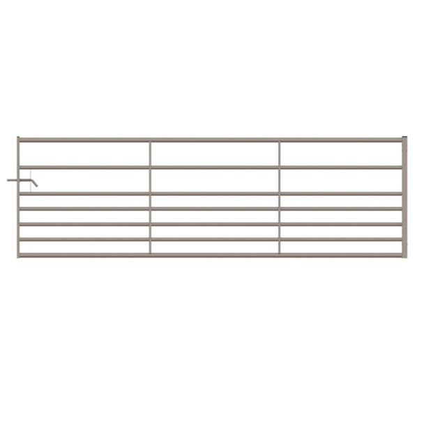 Mit einer Höhe von 1143 mm ist das Tor groß genug, um Vieh sicher und ohne Aufwand einzusperren. Es ist mit einem federbelasteten Schieberiegelverschluss ausgestattet, um sicherzustellen, dass kein lästiges Vieh durch einfaches Drücken des Tors entkommen kann. Das Tor verfügt über eine Kastenprofil-Rechtsverstrebung für verbesserte Stabilität. Das Kastenprofil besteht aus rechteckigen und quadratischen Hohlprofilen aus Weichstahl, die das Tor verstärken.