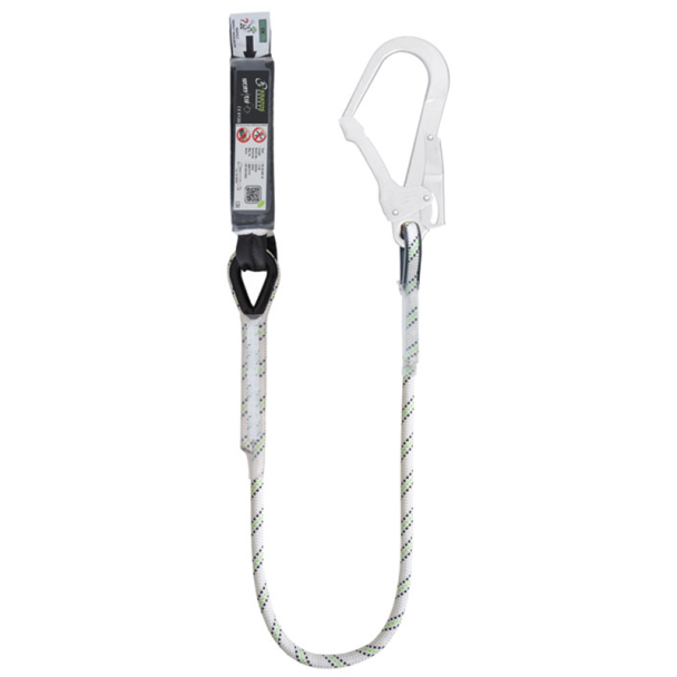 Ein Schwerkraft-Verbindungsmittel mit Falldämpfer aus Kernmantelseil wird in verschiedenen Hochrisikosituationen bei Arbeiten in der Höhe eingesetzt. Dieses Verbindungsmittel ist mit einem Gerüsthaken am Verankerungsende ausgestattet und wird häufig in Anwendungen eingesetzt, bei denen es auf Festigkeit und Haltbarkeit ankommt. Es verfügt über eine stoßdämpfende Funktion, um die Aufprallkräfte bei einem Sturz (unter 6 kN) zu reduzieren. Dieses Verbindungsmittel verfügt über einen Falldämpfer aus 35 mm breitem Gurtband und einem Polyamid-Kernmantelseil mit 11 mm Durchmesser und ist mit einem Gerüsthaken am Verankerungsende ausgestattet. Es eignet sich für den Einsatz mit festen Leitern, Gerüsten, Gitterkonstruktionen und horizontalen Arbeiten. Das Verbindungsmittel verfügt außerdem über ein Absturzindikator-Etikett, das vor jedem Gebrauch überprüft werden sollte. Wenn es einen Sturz aufgefangen hat, weist ein Schild mit der Aufschrift „NICHT OK“ darauf hin, dass die Ausrüstung nicht mehr verwendet werden darf.