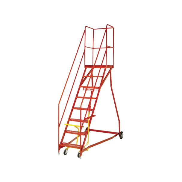 Der Hauptrahmen ist mit einer strapazierfähigen roten Epoxidpulverbeschichtung versehen und verfügt über einen Sicherheitsbügel sowie einen gelben Handverriegelungshebelmechanismus, der verhindert, dass Benutzer die Stufen erklimmen, während das Gerät noch beweglich ist.