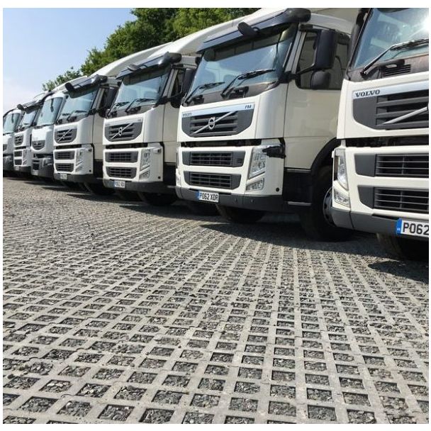 Das aus recyceltem Kunststoff hergestellte TRUCKPAVE Stabilisierungsgitter ist robust, langlebig und hält jedem Verkehr stand, sogar Bussen, Müllwagen und Lkws.