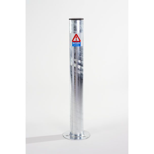 Feststehende Pfosten aus verzinktem Weichstahl mit einer Höhe von 750 mm und in verschiedenen Rohrdurchmessern erhältlich. Erhältlich entweder in Beton eingegossen (gezackt) oder auf Beton festgeschraubt (geflanscht). Jeder Pfosten ist mit einer Kunststoffkappe versehen.
