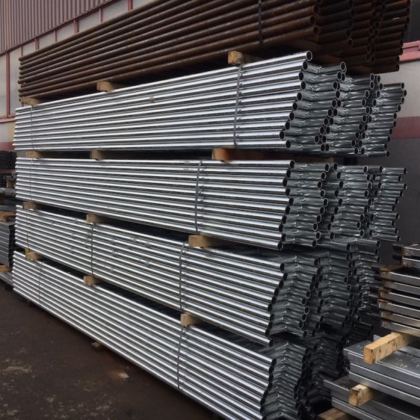 Verzinkte Stahlleiterträger sind essentiell für den Aufbau komplexer temporärer Gerüststrukturen. Diese werden durch das Schweißen von runden Stahlhohlprofilen in Leiterform gefertigt. Die Leiterträger sind 305 mm breit und die Abstände zwischen den Ringen sind gleichmäßig verteilt.