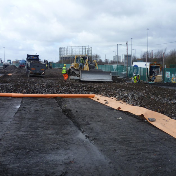 Aufgrund der gestiegenen Nachfrage nach qualitativ hochwertigem Bauland kommt die Sanierung von Industriegebieten immer häufiger vor. Unsere gut sichtbare Geomembran ist für den umweltfreundlichen Einsatz bei Projekten konzipiert, um künftige Bauunternehmer und Baggerfahrer auf im Untergrund verborgene Gefahren aufmerksam zu machen, die bei früheren Projekten vergraben waren.
